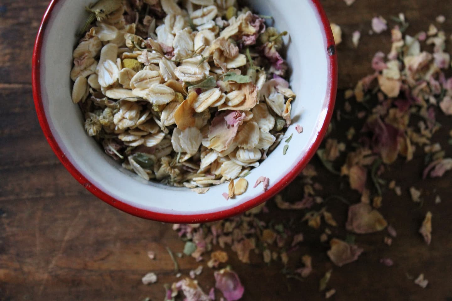 ・オートミール:10粒 ・カモミール:ひとつまみ ・ローズ:ひとつまみ ・お茶パック