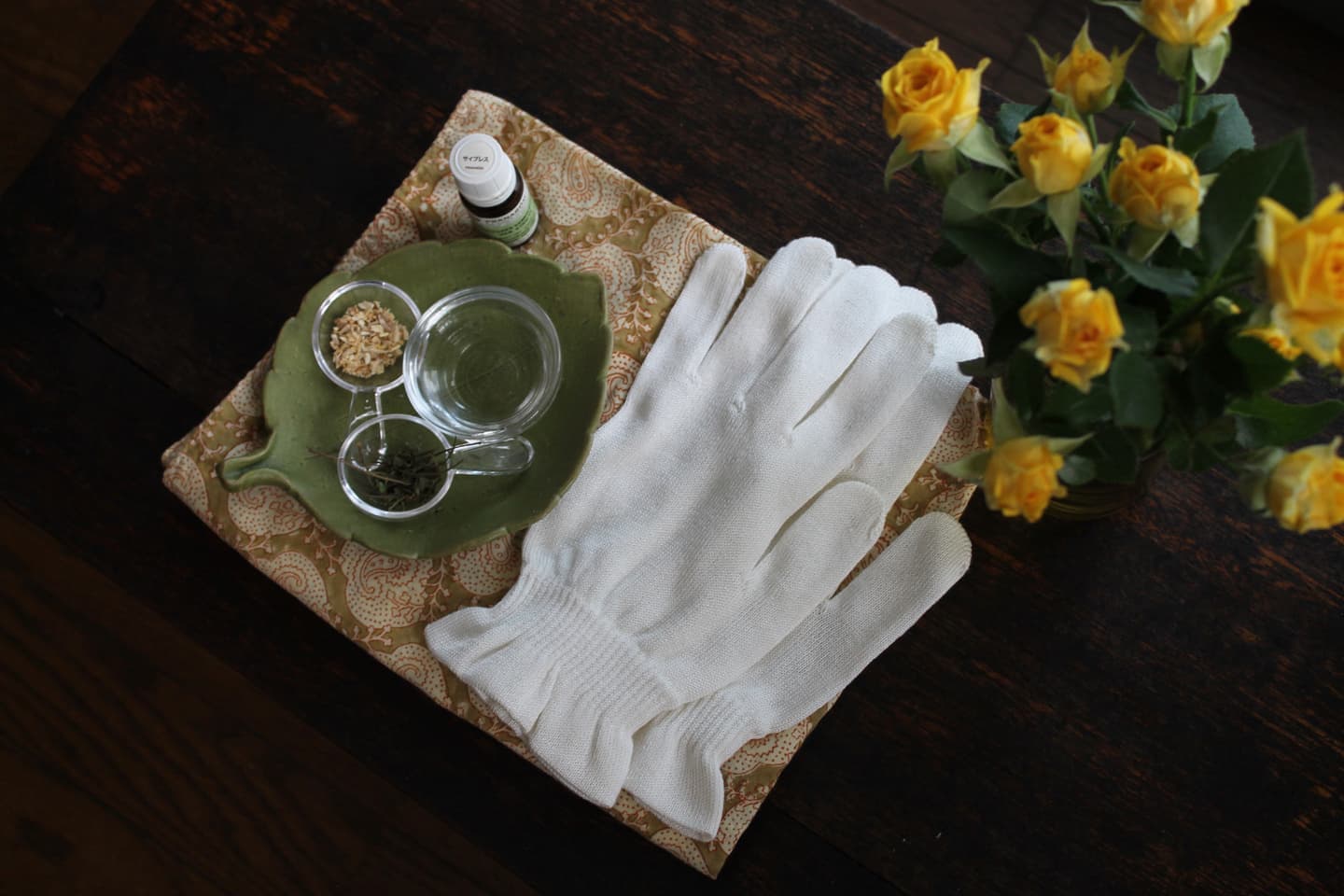 ・絹の手袋またはタオル
