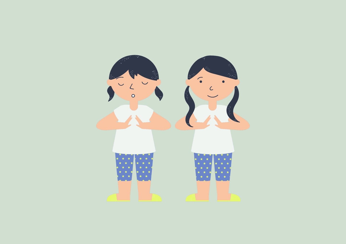 数回くり返すだけで、胸の熱がやわらぎ、 心もすっと落ち着きます。寝る前や、暑さで気持ちが落ち着かないときにもおすすめです。