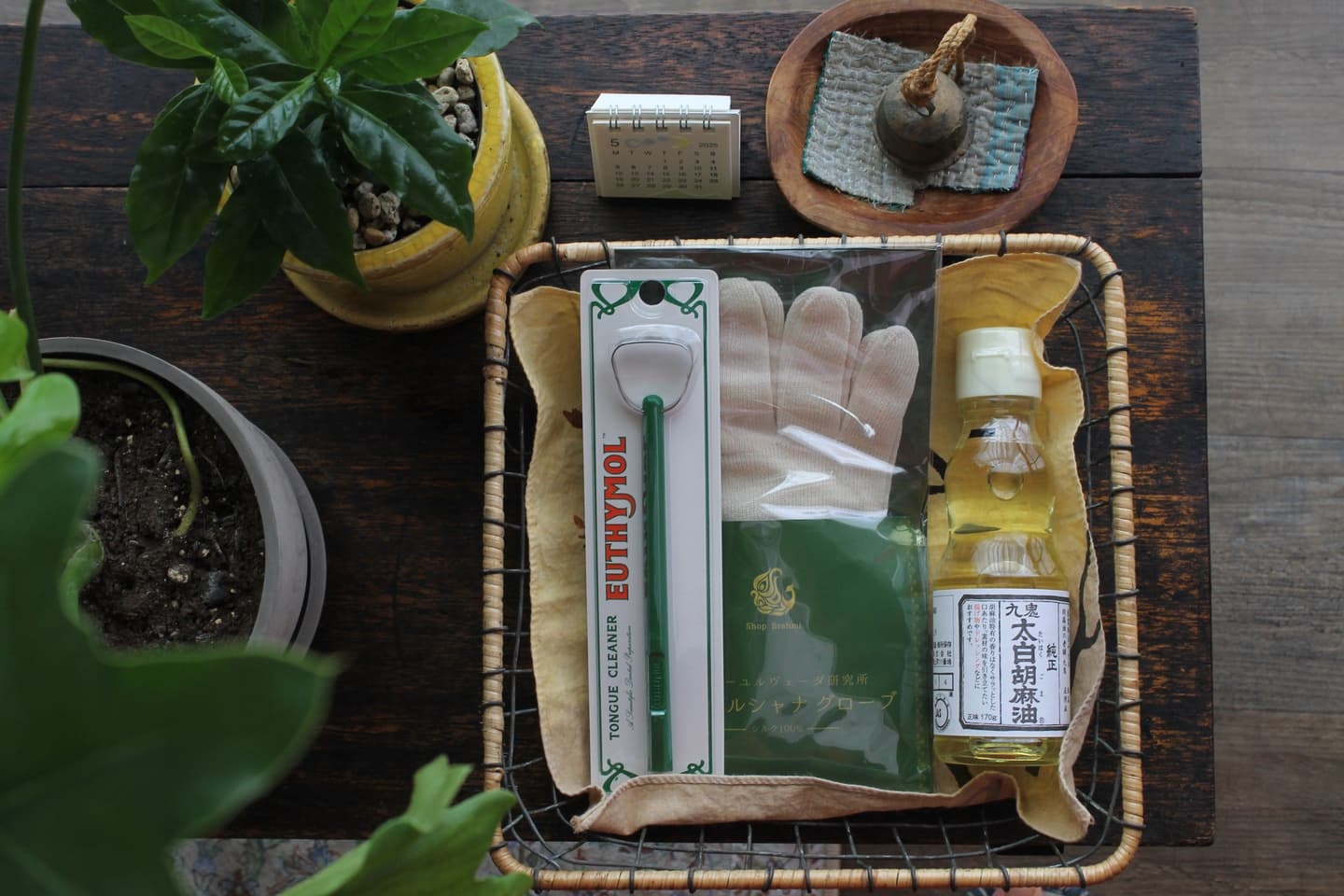 (マッサージオイル・舌みがき・ガルシャナ手袋・テキスト付き)