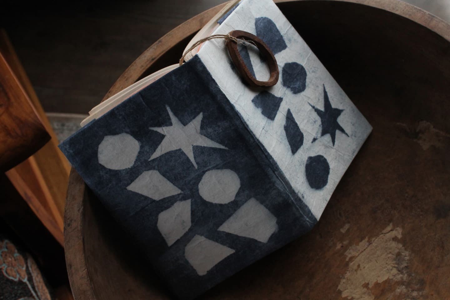 今回、サイズは ハードカバー用 と 文庫本用 の2種類。どちらかお好きなサイズをお選びいただけます。もちろん、両方作ることもできます。染め上がった和紙は、本にかけて使うのはもちろん、そのまま額に入れて飾っても素敵です。インクは2種類(茜色・藍色)をご用意しています。どちらも和紙との相性がよく、深くやさしい色合いに染まります。